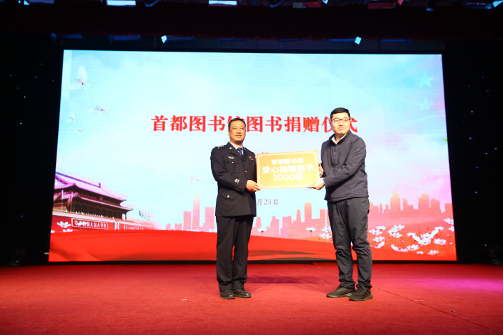 活动现场,首都图书馆向北京市未成年犯管教所捐赠图书。图源:北京市监狱管理局